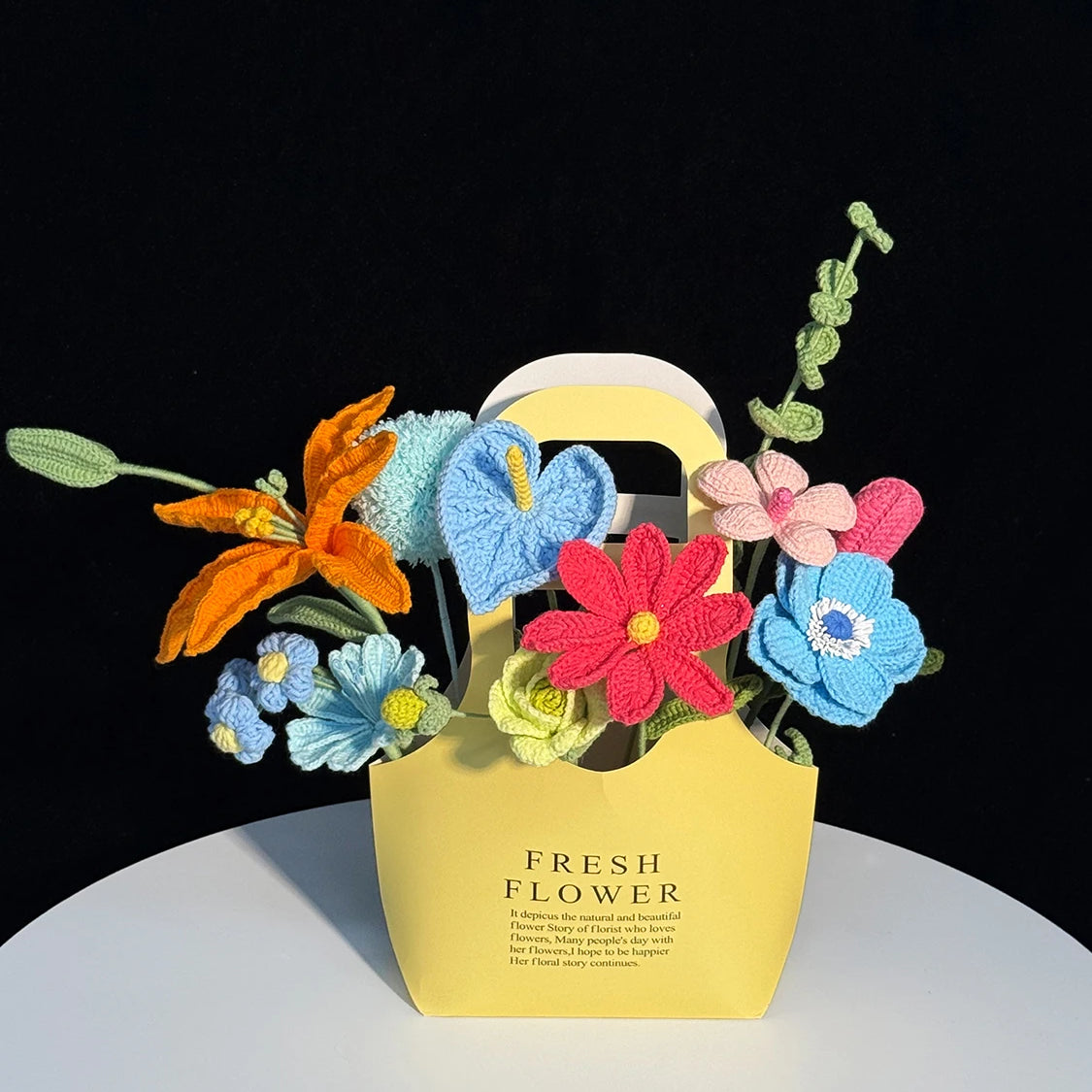 Colorful Handmade Crochet Flower Bouquet, Knit Floral Gift Bag Arrangement
