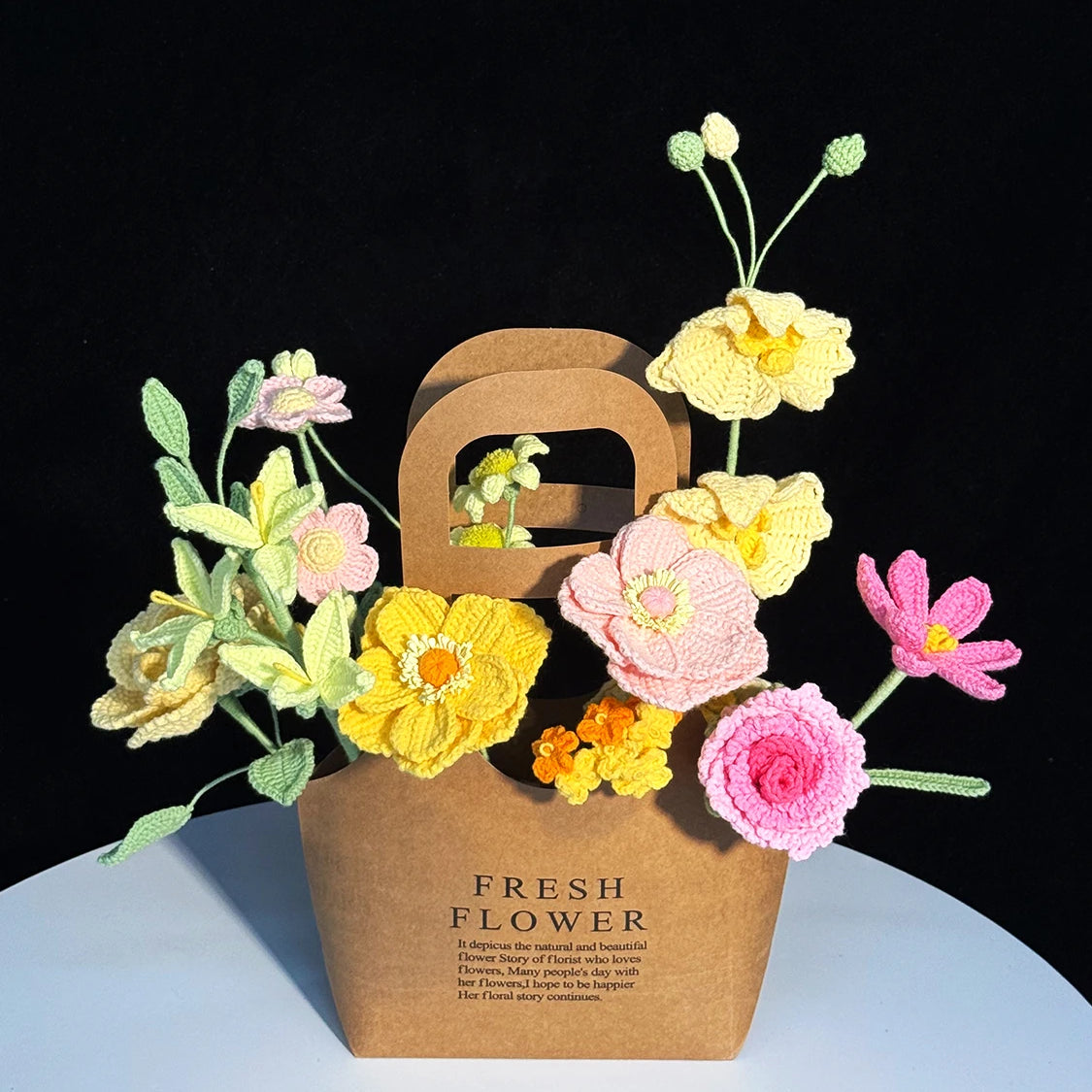Sunny Pastel Crochet Flower Bouquet In Paper Bag