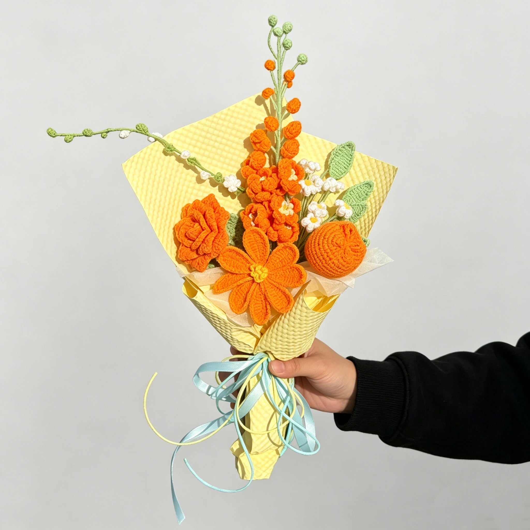 Crochet Sunflower & Mini White Flowers Bouquet - Unique Gift for Birthday & Graduation