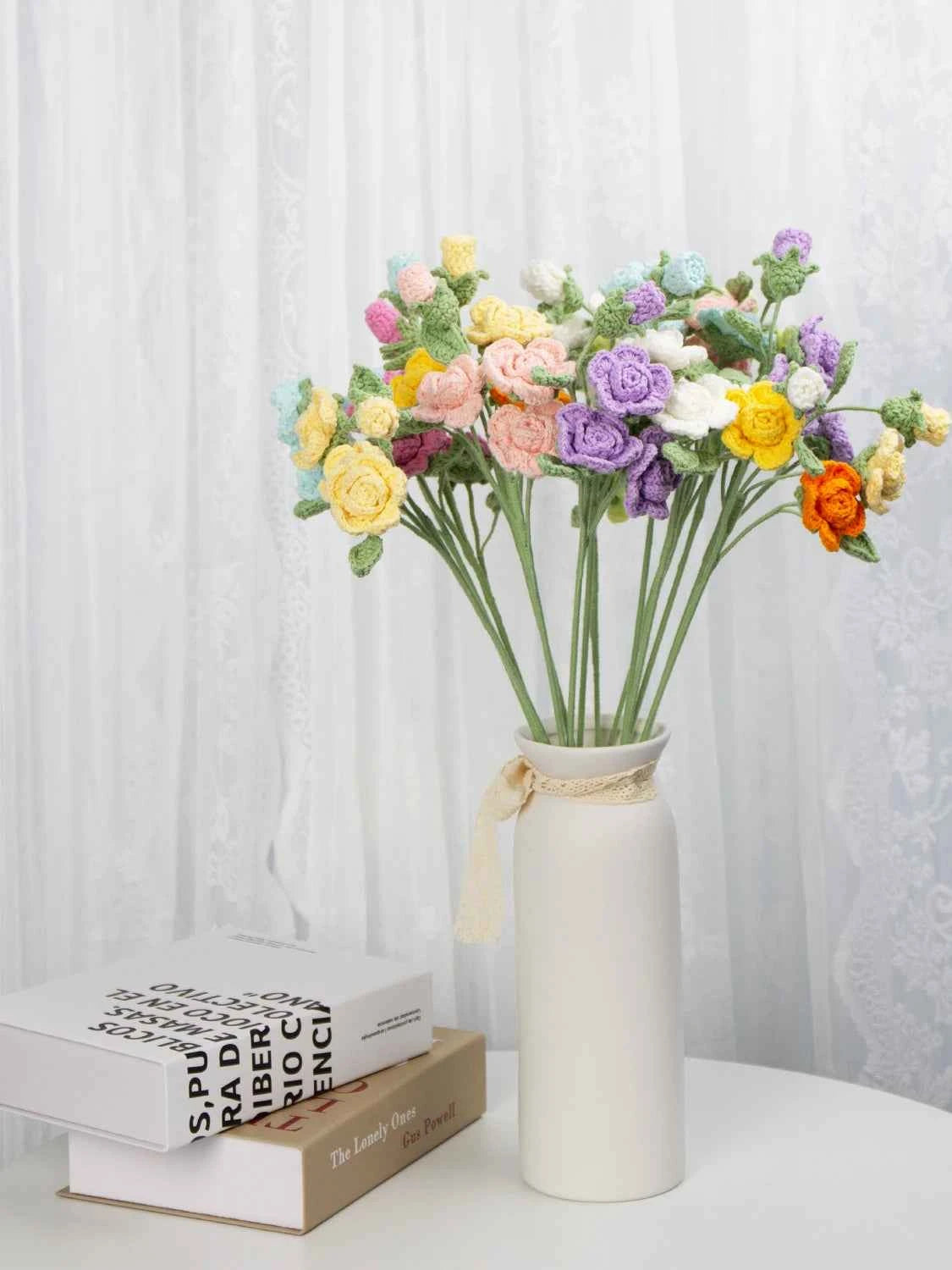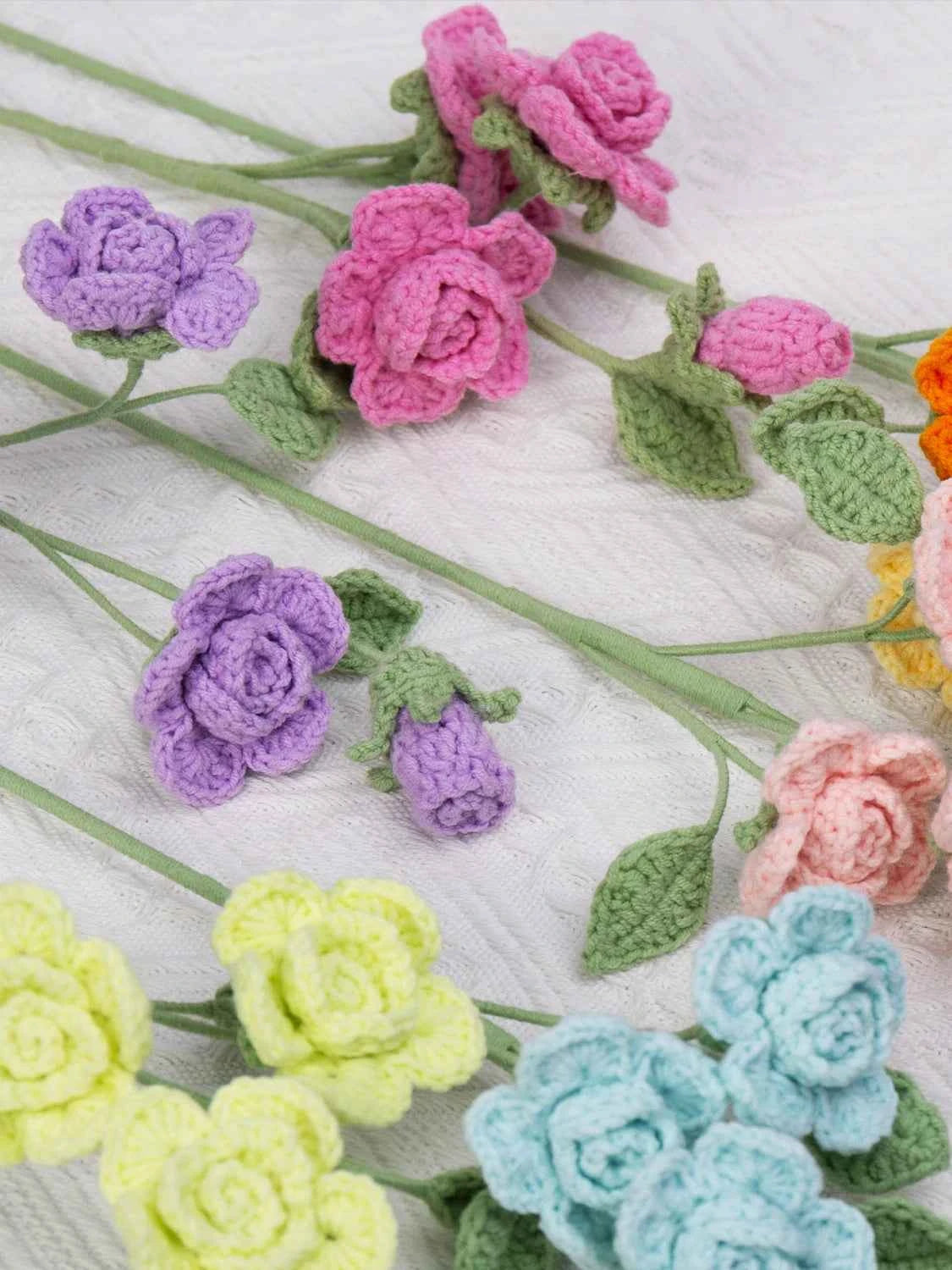 Handmade Crochet Knitted Single Stem Flower Barbie Rose