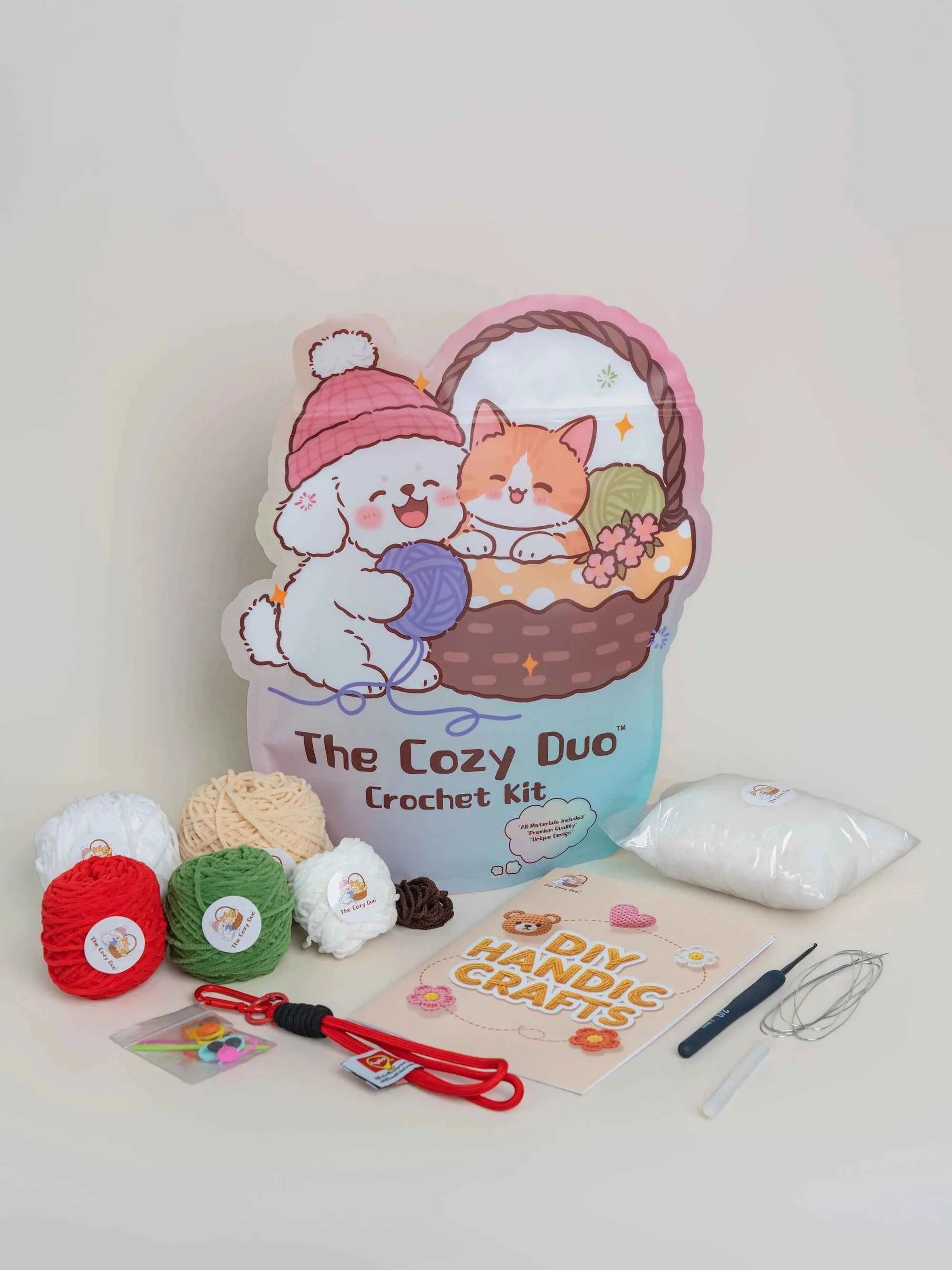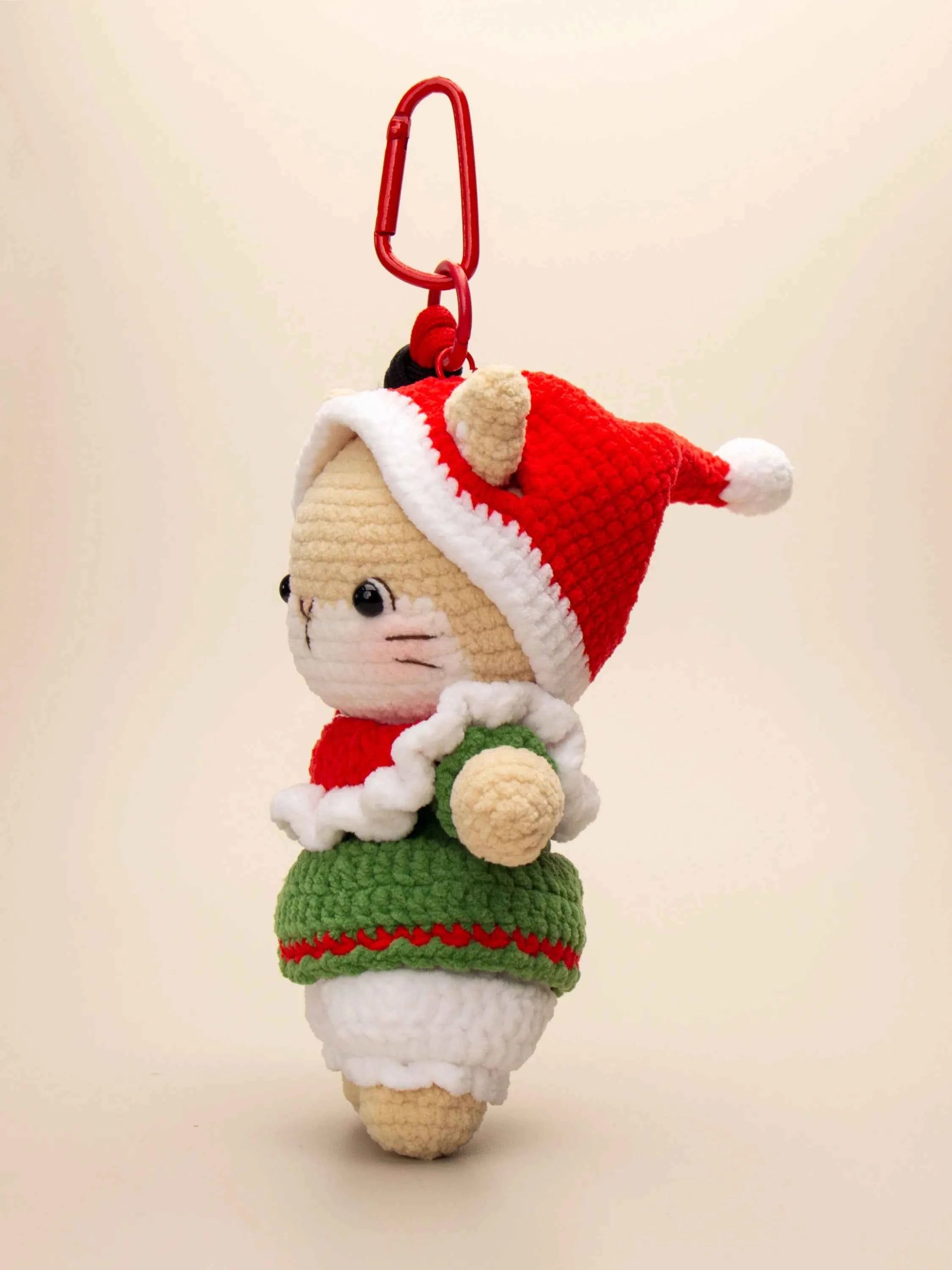 Christmas Cat Keychain Crochet Kit - Handmade Soft Yarn Plush Bag Charm