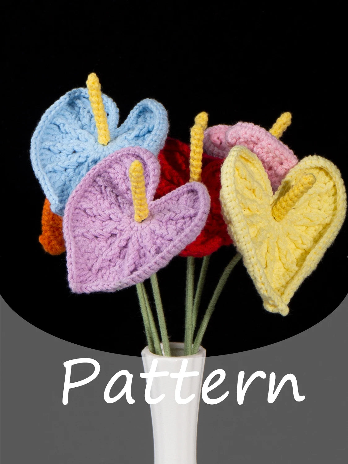This is our crochet simple anthurium flower kit contain cotton yarns, flower stems, and other accessories. With this kit, you can make 6 beautiful anthurium flowers. We provide free patterns and video tutorials for you to follow. DIY crochet flower at home.