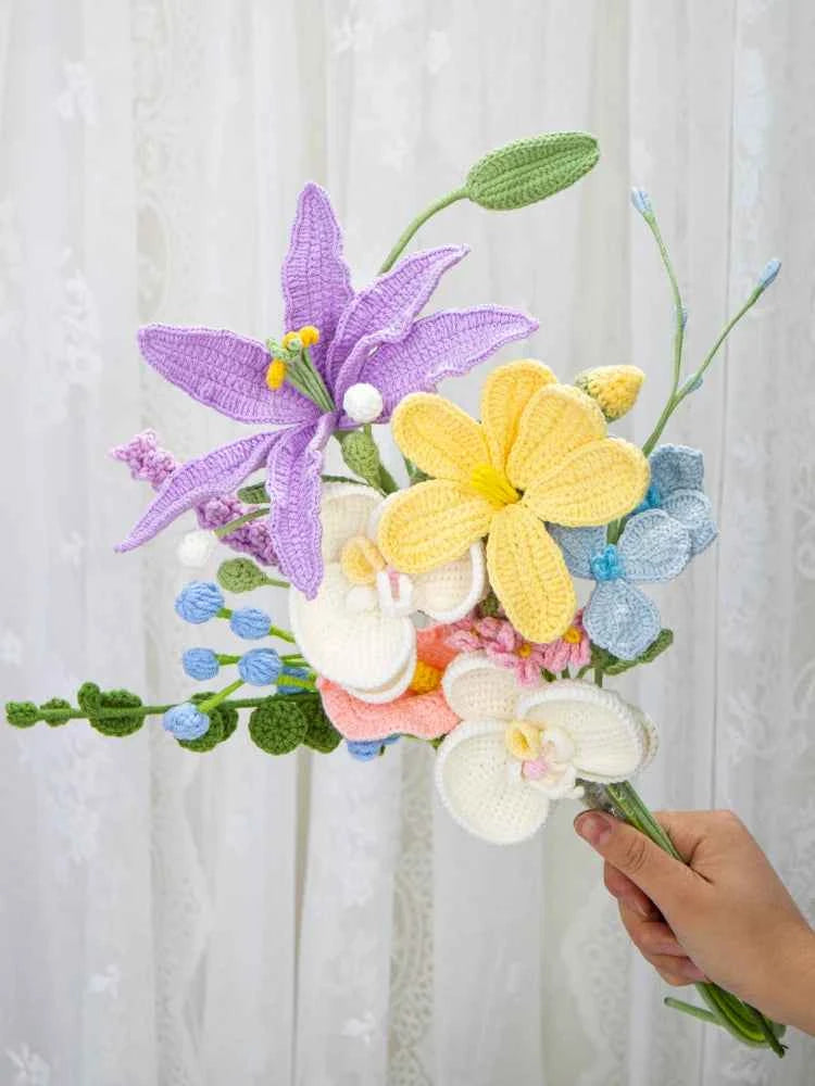 Create your own everlasting, vibrant crochet flower bouquet with our all-inclusive DIY kit! This complete crafting set contains everything you need to handcraft a stunning arrangement of lilies, orchids, and delicate filler flowers—no extra supplies required.