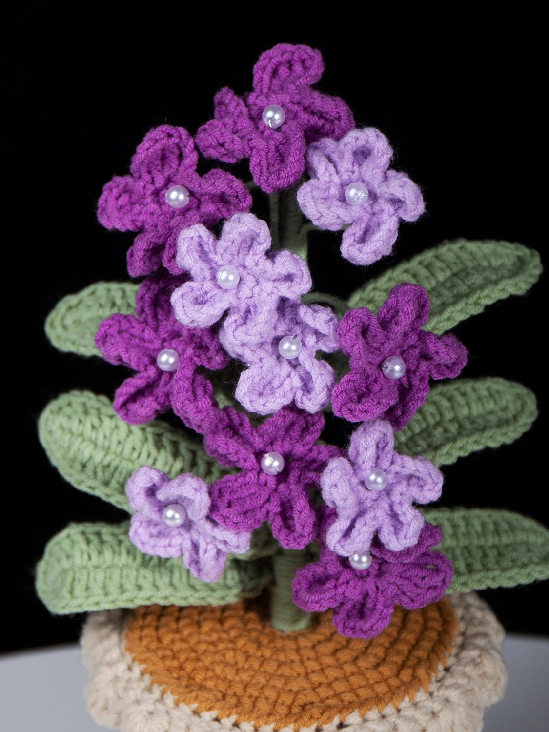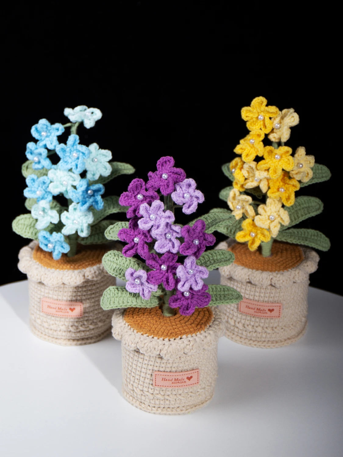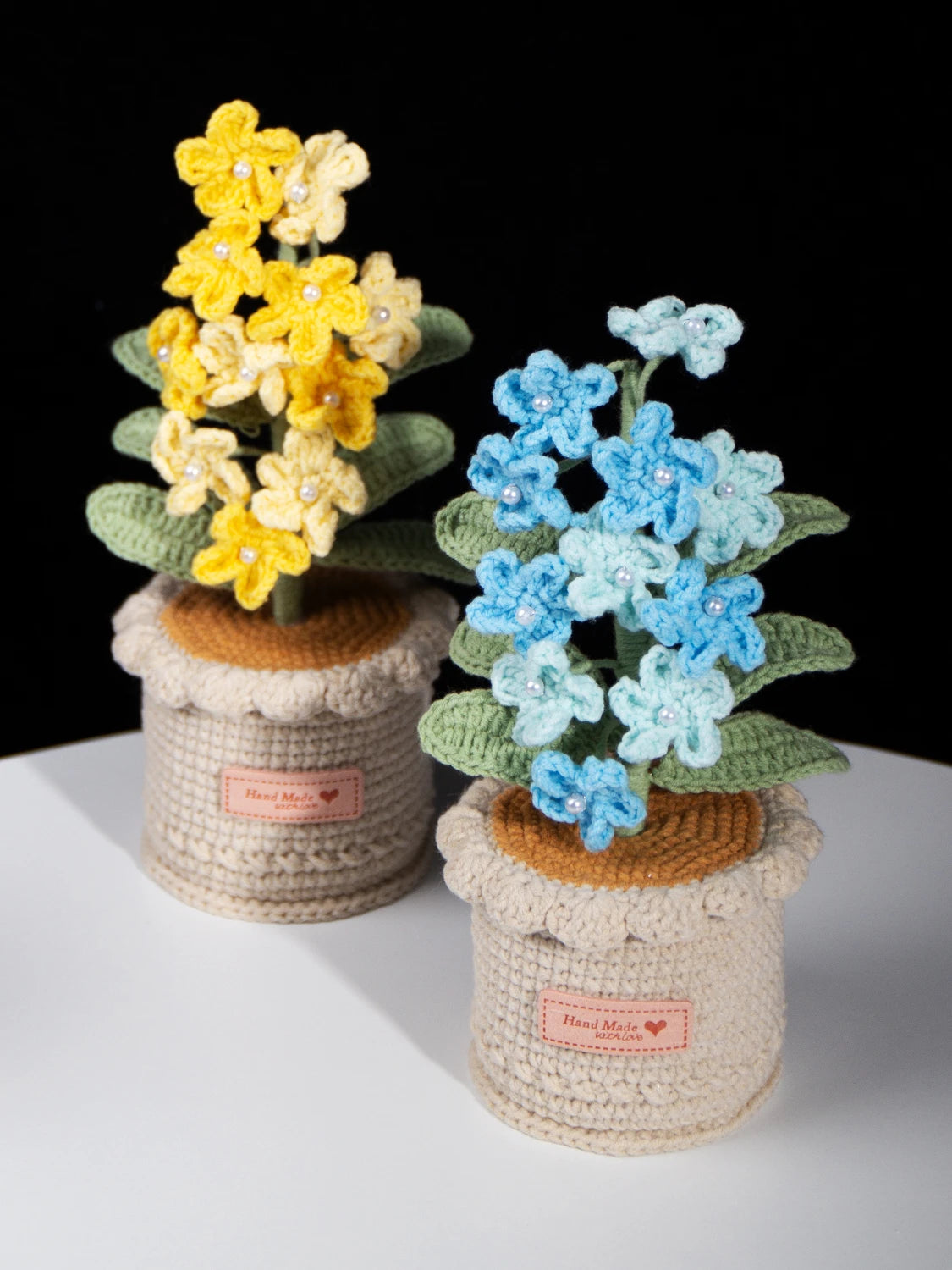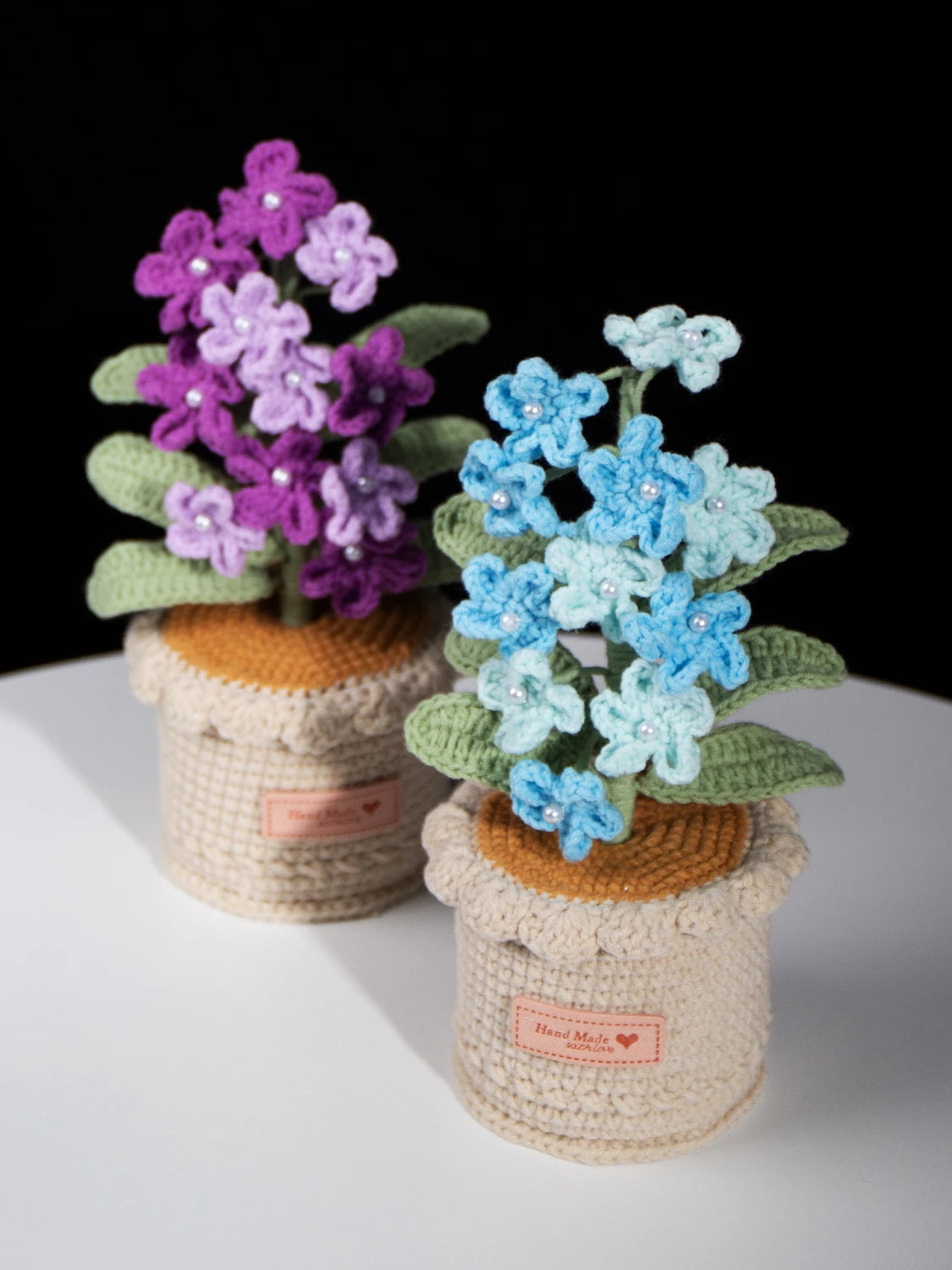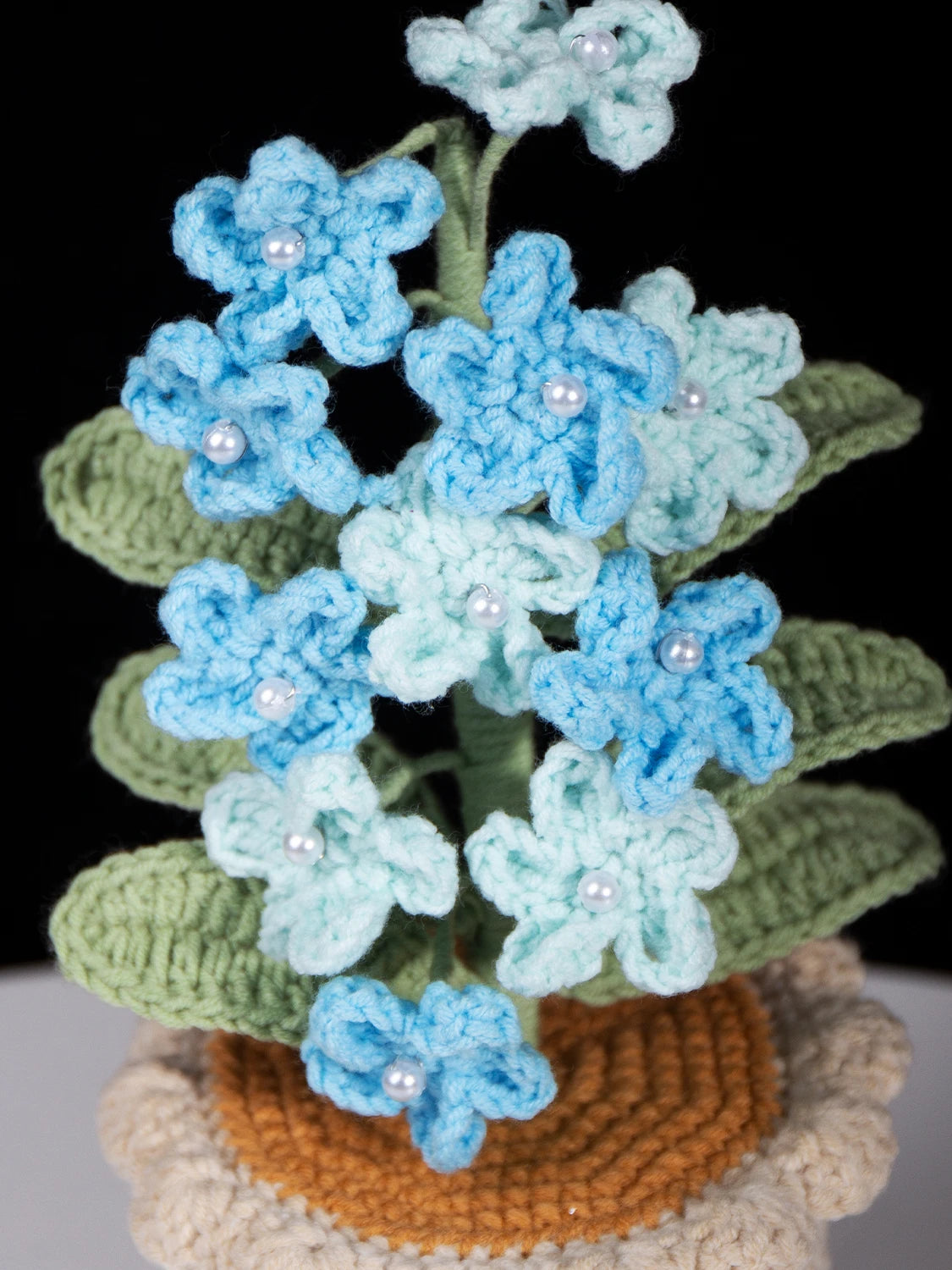 Crocheted forget-me-not potted plant, inspired by the flower’s symbolism of eternal love and longing. Crafted with soft yarn to embody this tender yet steadfast emotion, a timeless keepsake that never fades with the seasons. Boasts highly realistic detailing and romantic layered color palettes.