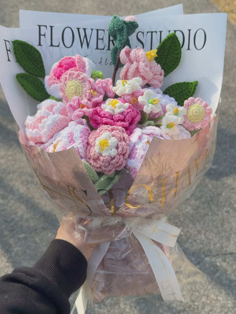 Handmade Crochet Flower Bouquet,Forever Knitted Peony & Daisy Bouquet