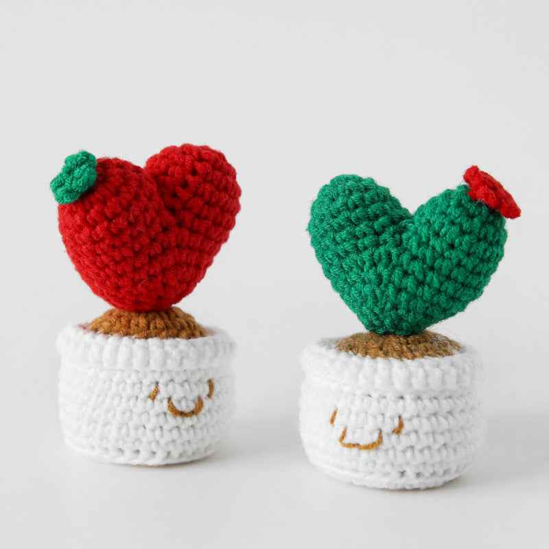 Handcrafted crochet flower pot combining artisanal charm with functional design. Each piece features intricate heart motifs worked in premium yarn, creating a textured vessel perfect for small succulents, herbs, or decorative plants. The breathable crochet construction allows optimal air circulation for healthy root systems. Ideal for adding warmth and personality to shelves, desks, or windowsills. A thoughtful gift for plant lovers and craft enthusiasts alike.